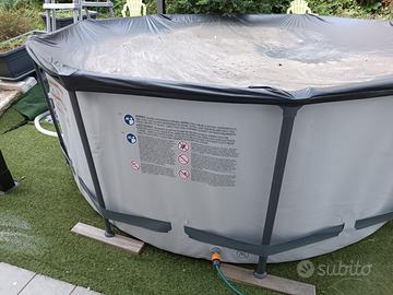 Piscina Bestway Steel Pro Max 305cm tonda H 100cm. Con scaletta, utilizzata 1 stagione, svendo per misure errate. Come si vede in foto va oltre la pergola e devo cambiarla.