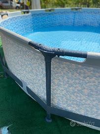 La piscina e stata usata solo un estate ed e perfettamente coservata, ha solo due piccole perdite sil gondo dovute a due creppe che si possono incollare semza problemi. La vendo compresa della suo filtro a pompa originale.