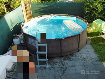 Piscina Bestway tonda, tenuta bene. - Piscina - Scaletta - Skimmer Eventuale pompa potenziata (11.350 l/h) a parte se richiesta: 150€
