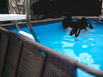 Piscina Bestway effetto rattan grigio scuro 412x201x122 con pompa Protezione per pavimento piscina Rastrello Pompa Svuotamento Piscina Scala non originale, scala in accaio di sicurezza Tutto compreso 1000 euro trattabili