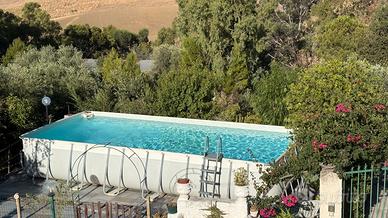 Piacina fuori terra 9 metri x 4 e 130 cm di profondità rigenerata anno 2025 filtro in garanzia + telo di copertura in materiale resistente a tutte le temperature ed agenti atmosferici
