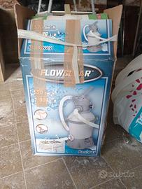 piscina con pompa di filtraggio a sabbia 530-2006 compresa di tubi telo di copertura e trampolino