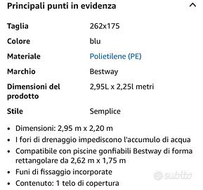 Piscina rettangolare family incluso telo di copertura 2,62x1,75x50 come nuovo vendo