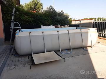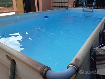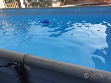 piscina da esterno lungh. 4Mt. x largh.2Mt. x H.1,2 Mt. , vendo causa inutilizzo completa di pompa , scaletta accessori vari . Condizioni buone presenta un po di ruggine su intelaiatura . Solo ritiro