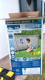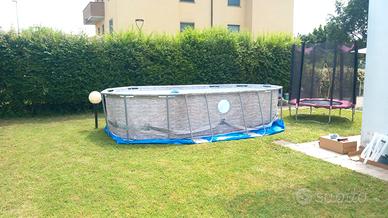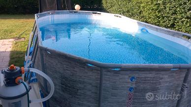 vendo causa trasloco piscina da esterno, misure presenti nelle foto con filtro a sabbia piccolo difetto sul fondo usata solo una stagione. prezzo di acquisto era 400 euro.