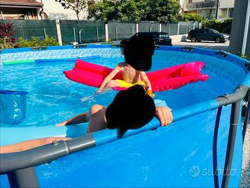 piscina circolare munita di pompa filtraggio professionale ( ho sostituito l'originale perché poco efficace). Nel prezzo compresi tutti gli optional extra ( retino, galleggiante per cloro, aspiratore ricaricabile per il fondo, qualche pastiglia di cloro, antialga....). tutto in buono stato