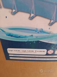 Vendo piscina da esterno 4.50x2.20 alta 84cm.La piscina è praticamente nuova, è stata usata per un solo anno.Come potete vedere in foto vendo anche filtro a sabbia, scaletta più retino per pulire piscina.