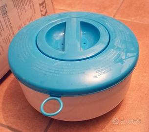 Piscina INTEX, montabile, con la sua scatola. Includo nella vendita anche il dispenser per le pastiglie di cloro, un retino, un tappeto verde (poggiapiedi prima di entrare e dopo l'uscita dall'acqua) e il telo di copertura.