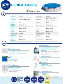 Piscina Gre Atlantis 550x132 KITPR558 smontabile fuori terra da giardino diametro 5,70 mt x altezza 1,32 mt completa di accessori (scaletta, retina raccolta foglie) € 500
