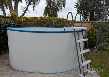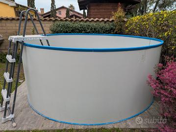 Piscina Relax "Well2wellness Sunny Pool" Rotonda con pareti in acciaio Rivestimento interno blu 0,6 mm Corrimano in pvc Dimensioni 300 x 120 cm Motore di filtraggio Bestway 58462 pompa bianco 46.5 x 47 x 31.5 Scala Piscina Index 28073 alta 122cm