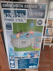 vendo piscina da giardino,adoperata solo anno scorso 2024 un paio di mesi,rimessa via come nuova con pompa e attrezzi vari,completa