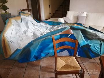 Piscina da terra, diametro 3,66 x altezza 1 mt. D'inverno sempre smontata e messa al coperto, mai bucata, si vede il segno del sole sul bordo. Assieme c'è la pompa a sabbia con i vari tubi.
