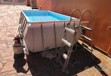 Vedo piscina esterna causa inutilizzo delle seguenti dimensioni 2mt x 3,5mt x 1mt di altezza. Utilizzata (poco) per 3 estati e sempre pulita e smontata alla fine di ogni stagione. La piscina è completa di tappeto isolante + scaletta di risalita + pompa di riciclo e pulizia acqua con i relativi tubi.
