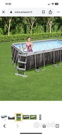 Piscina Ester bestway con pompa con filtro a sabbia perfettamente funzionante, la struttura misura4.12 x 201x122 , presenta un microforo riparato con toppa in dotazione che risolto la perdita, inclusa scaletta, skimmer esterno incluso, vendiamo per passaggio a struttura più ampia