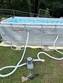 Piscina esterna Bestway 400x200x100/110 in buone condizioni, con pompa nuova acquistata nell'estate 2025. Perfetta per i bambini ma anche per gli adulti. Facile il montaggio. Incluso materassino da posizionare sotto per evitare danneggiamenti ed attutire eventuali sassolini sul prato/superficie pavimentata. Vendiamo per passaggio ad altro modello