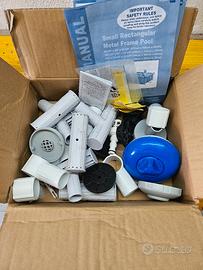 usata solo un mese poi ritirata causa inutilizzo, la piscina non presenta buchi ne toppe, completa di tutti i pezzi e istruzioni per montaggio, compresa di sua pompa pulizia con filtro nuovo e tubazione ( mai utilizzato perché utilizzato un'altra pompa in mio possesso), telo copripiscina, pastiglie antialghe e cloro.