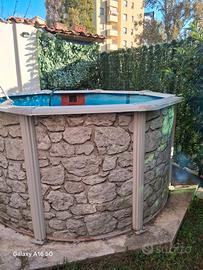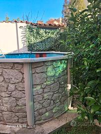 Vendo piscina tonda diametro 240 ed alta 130 cm per un totale a pieno carico di 4850 litri,la piscina è compresa di pompa a sabbia.Ho tenuto questa piscina per 6 anni e come si vede in foto nel telo blu ho dovuto passare prodotto perché con il tempo e le intemperie perdeva un po,ora è perfetta e cmq il telo costa 140 su solo bestway stessa marca della piscina....l'esterno è in alluminio con effetto finto marmo,è possibile vederla perche è sempre montata...