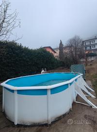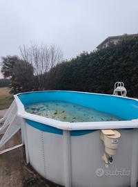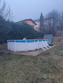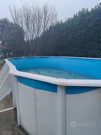 Vendo Piscina modello Fidji marchio Grè fuori terra. Liner leggermente usurato e giá riparato con patch. Pompa e scaletta non incluse. Smontaggio e trasporto a carico dell'acquirente. Prezzo al nuovo: 2000€ Caratteristiche: Forma: Ovale. Misure Commerciali: 730 x 375 x 120 cm (lunghezza x larghezza x altezza). Misure Esterne: 744 x 575 x 122 cm (lunghezza x larghezza x altezza). Misure Interne: 720 x 375 x 120 cm (lunghezza x larghezza x altezza). Spazio Necessario: 770 x 595 cm (lunghezza x larghezza). Volume: 25.323 litri. Superficie di Nuoto: 24,12 m2. Altezza Linea d'Acqua: 105 cm. Parete: Lamiera in acciaio galvanizzato di 45/100 di spessore. La lamiera è ritagliata per lo skimmer e la valvola di ritorno. Profili: Possiede 18 profili verticali di 12 cm di larghezza per ottenere una maggiore resistenza. Possiede 14 profili orizzontali di 150x1095 mm e 4 di 150x705 mm. Coperture di Protezione: Protettori d'iniezione nella parte di unione superiore dei profili orizzontali. Finitura: Lamiera e profili in acciaio galvanizzato laccato in bianco. Coperture di protezione in PVC bianco. Liner: PVC colore blu 40/100, con sistema overlap. Trattamento anti raggi UV (ritarda l'invecchiamento del PVC). Skimmer: Skimmer e valvola di ritorno in colore bianco, modello AR100.