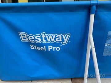 piscina fuori terra in ottimo stato , tenuta con molta cura , ha delle macchie bianche sul fondo perché la prima volta ho usato il cloro in polvere