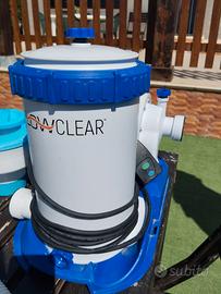 La piscina si vende completa di tutti i raccordi idraulici e di pompa per il filtraggio dell'acqua Bestway Flowclear con portata 9.463 litri/ora. La pompa supporta sia filtri tradizionali che a sfere filtranti.