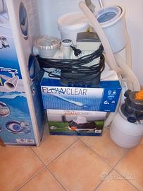 piscina fuoriterra senza filler. SOLO STRUTTURA TELO ROTTO ,pompa acqua, skimmer,robot per pulizia,accessori vari per manutenzione come foto.
