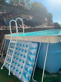 Piscina mt 8x4x1,40 come foto dotata di tutti accessori compresi / scaletta/asta e tubo 8mt con scopa x la pulizia / retino / telo x copertura invernale , pompa e Filtro a sabbia da 6m³/h con prefiltro, Potenza 230W, 0,31CV, serbatoio Ø 400, valvola 5 uscite, manometro. 35kg di sabbia ,2 lettini rigidi in rattan con materassini