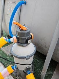 Vendo piscina fuori terra, 488x244x122h, come da foto. Completa di scaletta nuova, pompa con filtro a sabbia o con palline di cotone, telo di copertura non compreso in quanto rotto. Tubi orizzontali con qualche punto di ruggine come da foto.