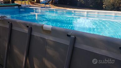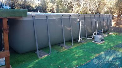 Meravigliosa piscina fuori terra avente misure 671 X 396 H 132 completa di ROBOT PULIZIA, pompa con filtro a sabbia, skimmer, 2 scalette, kit per pulizia + diversi ricambi La piscina ha 6 anni, viene sempre riposta all'asciutto durante l'inverno. Tutti i dettagli ben conservati comprese le istruzioni originali. Il telo presenta 2 pezze posizionate sulla parte alta (vedi foto). TUTTO IN PERFETTA EFFICIENZA. Al momento è smontata, pulita e pronta da ritirare!!!