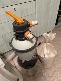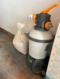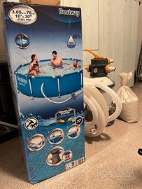Vendo PISCINA Bestway Steel Pro Max 305x76 cm blu e POMPA Bestway Flowclear con filtro a sabbia. PISCINA Il robusto liner è realizzato in Tritech, un materiale ultraresistente a 3 strati, rinforzato contro strappi e forature, assicurando la longevità della tua piscina. La struttura in acciaio inossidabile è dotata di connettori FrameLink per un collegamento solido e sicuro. Questi connettori protettivi prevengono la formazione della ruggine impedendo il contatto fra parti metalliche. POMPA Efficiente pulizia della piscina: la pompa per filtro a sabbia mantiene ogni piscina pulita e igienica in modo affidabile. Pratico manico: l'impugnatura superiore della pompa filtro è girevole a 360 gradi per un funzionamento a leva con una sola mano. Facile da usare: il filtro per piscina è facile da usare grazie alla valvola a 6 vie e al manometro di facile lettura. Compreso nel pacchetto: retino, termometro, prodotti per l’acqua e un sacco di sabbia utilizzati al 25%. Utilizzata una sola volta nell’estate del 2021, vendo causa fine ristrutturazione di casa con realizzazione di piscina interrata.
