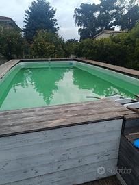 vendo piscina fuori terra più struttura in larice siberiano ed abete..piscina 7,33x3,66,x120..struttura in legno da lavare con idropulitrice e verniciare a piacimento.. trattabile accetto proposte
