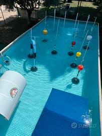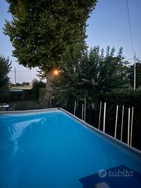 Vendo piscina fuori terra intex 7,32x3,66x1,32 e pedana di accesso in legno (senza rampa di accesso in acqua o scaletta). Il telo della piscina necessita di essere sostituito vista l’eta (6 anni). Ottima per essere ripristinata con telo nuovo o per usare i pezzi come ricambio (tubolari, skimmer, pompa ecc).