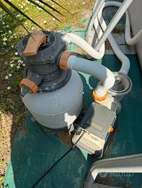 Piscina fuori terra usata completa di filtro a sabbia (Bestway Flowclear) funzionante, come da foto. La piscina è usata, presenta solo alcuni piccoli buchetti già sistemati con toppe. Nulla di strutturale, utilizzabile senza problemi. ⚠️ Nota importante: la scaletta NON è inclusa, anche se presente in foto. Inclusi: Filtro a sabbia completo con pompa Tubi e collegamenti Skimmer/filtro superficiale Accessori vari rimasti Copertura superiore Ideale per chi cerca una piscina completa a prezzo contenuto. 👉🏻 Solo ritiro a mano, posso aiutare per smontaggio. Usata, quindi con normali segni di utilizzo.