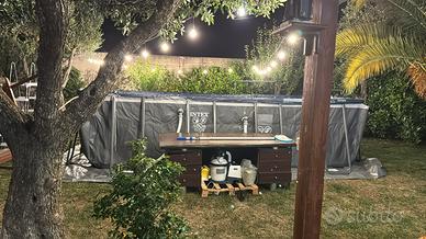 Le misure sono 732cm x 366cm x 132cm,dotata di un filtro a sabbia che cinsente di avere l’acqua sempre cristallina.