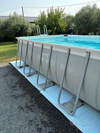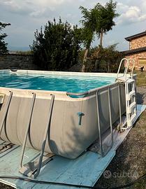 Vendo piscina fuori terra INTEX rettangolare 3,50 x 7 mt circa, con filtro buone condizioni. Piscina ideale per giardino, perfetta per chi vuole godersi l’estate senza lavori invasivi. Caratteristiche principali: •Struttura solida con telaio in acciaio •Rivestimento resistente e ancora in buone condizioni •Dimensioni 3,50x7 mt •Scaletta non inclusa •Impianto di filtrazione con filtro a sabbia incluso (come da foto) •Tubi e collegamenti presenti Condizioni: •Funzionante •Normali segni di utilizzo •smontaggio ecritiro a carico dell’acquirente • telo di copertira un po usurato • Giunto tra piscina tubo filtraggio acqua da sistemare Plus: •Acqua sempre limpida grazie al filtro a sabbia •Struttura stabile (come visibile in foto) •Ottima soluzione economica rispetto a una piscina interrata Prezzo: 400€ trattabili Ritiro a mano (vista la dimensione)