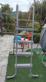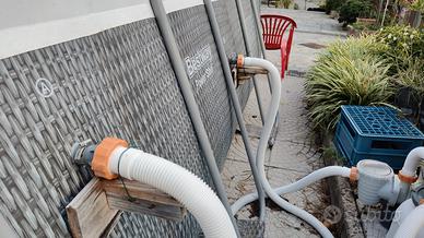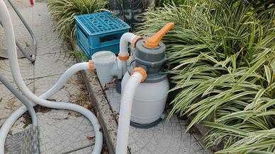 piscina intex esterno, circa 3, 70 x 1,74 altezza 1,22. in buono stato, ogni anno pulita, chiusa e rimessa al riparo. filtro a sabbia come nuovo, scaletta presente. se interessati posso fare altre foto. ha un piccolissimo forellino coperto con una patch.