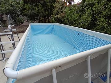 Vendo piscina fuori terra Intex 488x244x122 completa. Aggiungo telo termico, telo invernale, palloni piscina per chiusura invernale, due aspirapolveri manuali, skimmer interno ed esterno, due filtri nuovi per la pompa, tricloro, dicloro, cartine misura PH, prodotti regola PH, prodotto antialghe, flocculante e retino.
