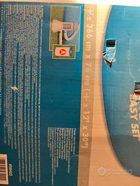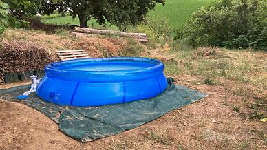 Vendo piscina fuori terra usata poco piu di una estate si marca Intex e di modello Easy Set. Condizioni ottime. Si monta appoggiandola a terra e gonfiando il cordolo con una qualsiasi pompa. Le misure sono diametro 3,66 metri, altezza 76 cm. Nel prezzo è inclusa anche la pompa filtro.