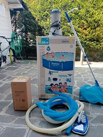 vendo piscina Bestway diametro 3.66 usata pochissimo,contro filtri aggiuntivo ,retina per la pulizia,telo per coprirla e altri accessori come in foto ,solo contatti whatsapp,consegna in loco non spedisco