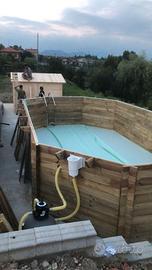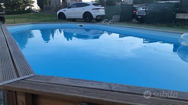 Vendo piscina 9 persone 4,5 H 150 In legno Completa di motore a sabbia, robottino per la pulizia, copri telo
