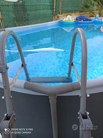 Come da foto (con piccolissimo foro da riparare); completa di scala( con un po' di ruggine nei piedi che vanno in acqua) e pompa della flowClear con filtro in sabbia( ancora nuova, imballata perché sostituita in garanzia e mai installata) ; possibilità di avere anche la vecchia per usufruire di qualche eventuale ricambio. Disponibilità immediata, consegna a mano, pagamento cash, contatto solo su whatsapp.