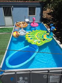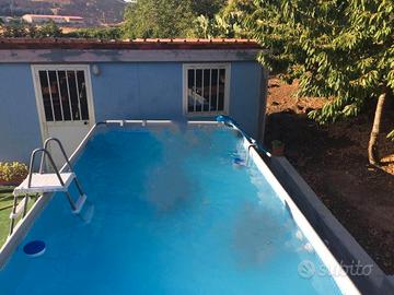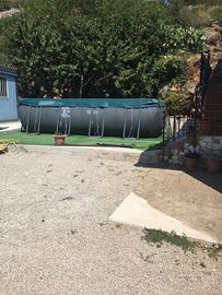 vendo piscina fuori terra come nuova, acquistata nel 2023 ed usata soltanto una volta. Le misure sono: 6 metri circa in lunghezza, 3 metri circa in larghezza e 1,5 metri circa di profondità. La piscina è corredata dai seguenti optionals: scaletta in alluminio, robot motorizzato per la pulizia del fondo e delle pareti, pompa filtro a sabbia ed infine telo copri piscina. La richiesta è di € 1300 trattabili