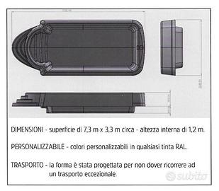 Misure 7.3m x 3.3m altezza 1.2m (fuori terra 80cm). Vedere lo schema in foto.
