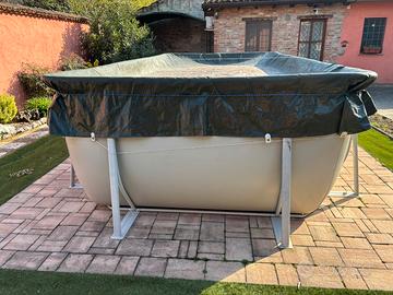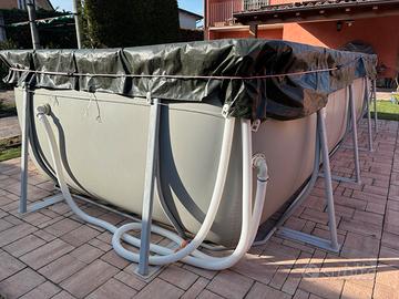 Vendo bellissima piscina fuori terra modello Futura 550 della Poolmaster by New Plast. Misure piscina: lunghezza 520 cm - larghezza 265 cm - altezza 125 cm. Portata 15 mt cubi. Prodotto 100% italiano. Ottima qualità liner. Robusto e resistente. La piscina é in buonissime condizioni. Perfettamente funzionante. Completa di skimmer, tubi di collegamento e pompa di filtrazione Bestway super potente (superiore alle effettive esigenze della vasca). Acquistata più potente per garantire un perfetto ricambio dell’acqua. Pompa a sabbia o a palline filtranti. Serbatoio della pompa nuovo (pagato 60 euro). Acquistato alla fine della scorsa stagione estiva e non utilizzato. La pompa ha fatto una sola stagione. Acquistata nuova presso Brico Center e pagata 260 euro. L’unico elemento mancante é la scaletta. Che era danneggiata e quindi é stata buttata. Per il resto é tutto ok. La piscina al momento é piena. Se venduta verrà svuotata e smontata. Trasporto a cura dell’acquirente.