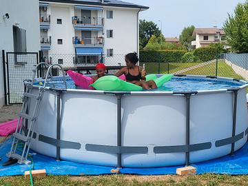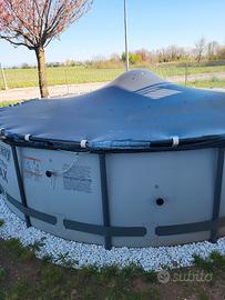 vendo piscina fuori terra Bestway rotonda,diametro 427 cm altezza 107 cm capacita' 13030 litri di acqua grigia,completa di tubi ,pompa ,scaletta,telo di copertura,istruzioni e scatola,usata una stagione in buone condizioni