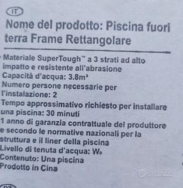 vendo piscina intex 300x200x75 nuova imballata. no filtro, no copripiscina IN REGALO GRIGLIA ELETTRICA FERRARI e una bottiglia d'acqua x iniziare a riempire la piscina!