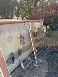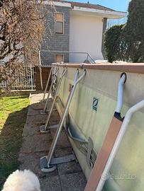 Per inutilizzo vendo piscina Zodiac di 5mt x 3mt con filtro a sabbia, le condizioni come da foto sono buone ma necessità di una importante pulita per quanto riguarda il telo in quanto è rimasta montata 3 anni senza essere utilizzata. Il filtro a sabbia funziona correttamente ma necessità della sostituzione di alcune guarnizioni di tenuta.