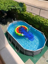 Vendo piscina fuori terra coordinata di scaletta e pompa, causa inutilizzo. La struttura è buona, usata solo per 2 stagioni. Accessori vari inclusi nel prezzo. La sua forma ovale, particolare, la rende unica. Alta 1 metro, misura 4 metri per 2.50. Come potete vusualizzare in foto. Regalo il telo di copertura a bolle per mantenere la temperatura.