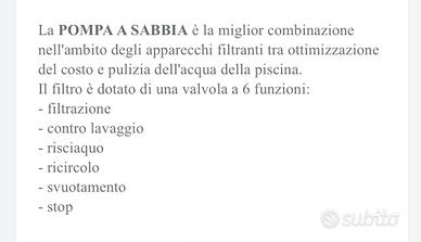La POMPA A SABBIA è la miglior combinazione nell'ambito degli apparecchi filtranti tra ottimizzazione del costo e pulizia dell'acqua della piscina.