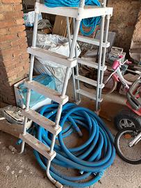 dimensioni: 8m*3m*H1,2. completa di pompa,filtro,attrezzi di pulizia e scaletta + telo protezione invernale
