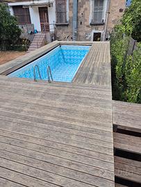 Vendo piscina fuoriterra completamente rivestita in legno autoclavato montata ad Agosto 2024 usata 15 gg ad agosto 25 le misure della struttura sono 9,75x 4,75 circa, completa di tutto anche impianto luci a led motore a sabbia maggiorato doppia scala di accesso al prendisole fioriera anteriore panche laterale inclusi nel prezzo come omaggio robot e aspirapolvere ed altro,la piscina è già smontata e schemi di montaggio trasporto a carico del eventuale acquirente ,unica nota è che sul legno si deve passare impregnante in quanto è un lavoro che comunque quest'anno a maggio ho fatto fare ma purtroppo ho trovato un incompetente adesso pubblico la foto di quando fu montata 2024 e le successive del 2025 prezzo richiesto 5900€ praticamente ho speso giusto il doppio, potrei valutare anche la sola vendita della struttura per ulteriori info resto a disposizione,opzione di acquisto vista e piaciuta